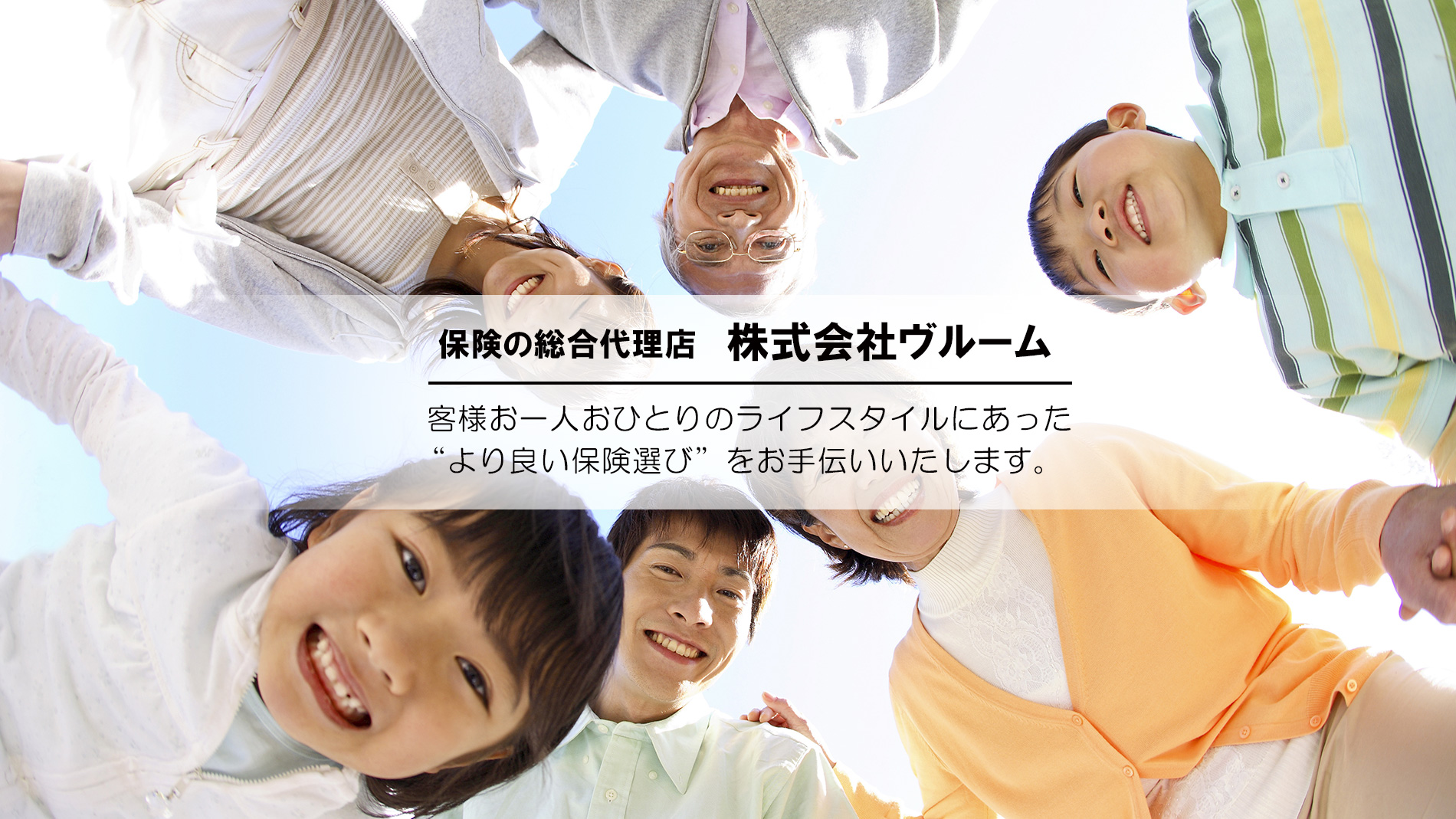 ヴルームは、お客様お一人おひとりのライフスタイルにあった“より良い保険選び”をお手伝いいたします。株式会社ヴルームは、保険の総合代理店です。様々な保険会社のあらゆる保険商品の中からあなたにぴったりの保険商品をお選びいただけます。私たちは、保険商品を通して個人財産の形成と保全・運用のトータルアシストを目指します。保険のことでお困りの際は、ぜひお気軽にお問合せください。